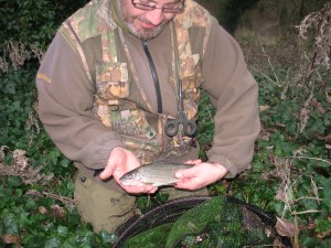 As the day wore on it seemed to get even colder and windier. Kevin found a small shoal of good quality grayling, taking several over a pound. Geoff also found a few. Overall we struggled at what is normally a fairly easy venue. I can only assume the conditions just weren’t quite right for the fish. Virtually all the fish came to maggot and I couldn’t but a bite on corn, which is normally good in coloured water.