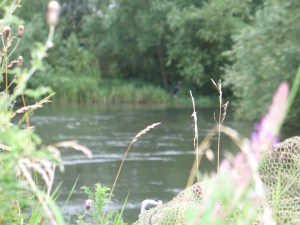 During the two days we were there, numerous narrow boats and big cruisers plowed up and down the river. They are always respectful and remain about halfway out, thus avoiding angler’s lines. However one decided to come through less than a quarter of the way across and by the time I saw it, it was almost too late. Due to the trees to my right (upstream) I often couldn’t see the boats until they were almost on top of me. Generally of course you could hear them coming but because of the heavy rain, my hearing was diminished. So I managed to sink the line on the first rod in lightening quick time but as I grabbed the second rod, the narrow boat went straight through the line and started to take line. I didn’t fancy my chances at landing this one, so had to pull for a break. There was much arm waving and head shaking but I did manage to resist the temptation of hurling abuse at the man and his wife at the wheel. She watched as I jumped up and down and shaking my fists like Basil Fawlty and must have got the message, because by the time they reached Geoff they had steered the boat across to the other side.