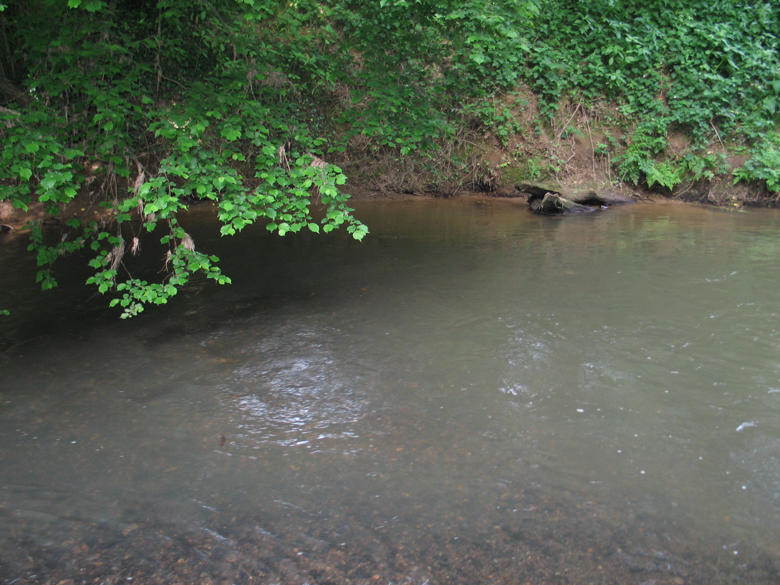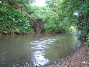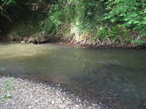 I lowered myself into a nice swim. It was an area below some shallows and the river then deepened and slowed into a long run overhung with trees. This area seemed to lack clean gravel but I persevered nevertheless. Unfortunately all to no avail. The highlight for me was hearing a loud commotion in the undergrowth behind me, reminiscent of a bull elephant charging, and then seeing two badgers run across a small wooden bridge. I could hear their heavy, scampering paws on the bare wood of the bridge before finally sighting them. Prior to that a small deer had also darted into the undergrowth just across the bridge. When you tuck yourself away into the bankside vegetation, its amazing how much wildlife appears from nowhere, quite oblivious to your presence.