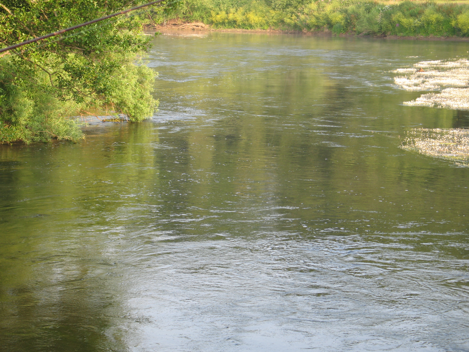 This is a very interesting swim. The river narrows considerably here, with an area of very shallow gravel commanding most of the swim. However on the nearside is a deep, fast gravel run. The water is almost a torrent as it’s pushed into the bank on a sharp bend and then runs off downstream. Thick weed abuts the channel and an area of still water lies to the right of the fast, boiling and swirling deluge of water forced down through this narrow channel. It’s an ideal spot for barbel to hole up. There’s loads of oxygenated water, cover and food and all in one fairly small and concentrated spot.