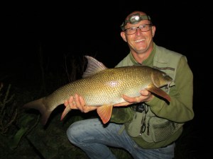 Throughout the afternoon and early evening I was getting lots of taps and pulls, some that were obviously hooked fish. I ended up with around 6-8 nice roach and a similar amount of small skimmer bream. As the evening wore on it looked less and less likely a barbel would put in an appearance, despite one of the regulars assuring us that after dark the fishing comes alive. Of course that’s always the kiss of death and I’m sure it can be incredible fishing on its day. Sadly today wasn’t that day. I did manage one barbel of around 6-7lbs and Geoff tempted 2. By 11.30 all was quiet. I was knackered and so we opted to call it a day. I’m sure we’ll be back for another go though before winter sets in.