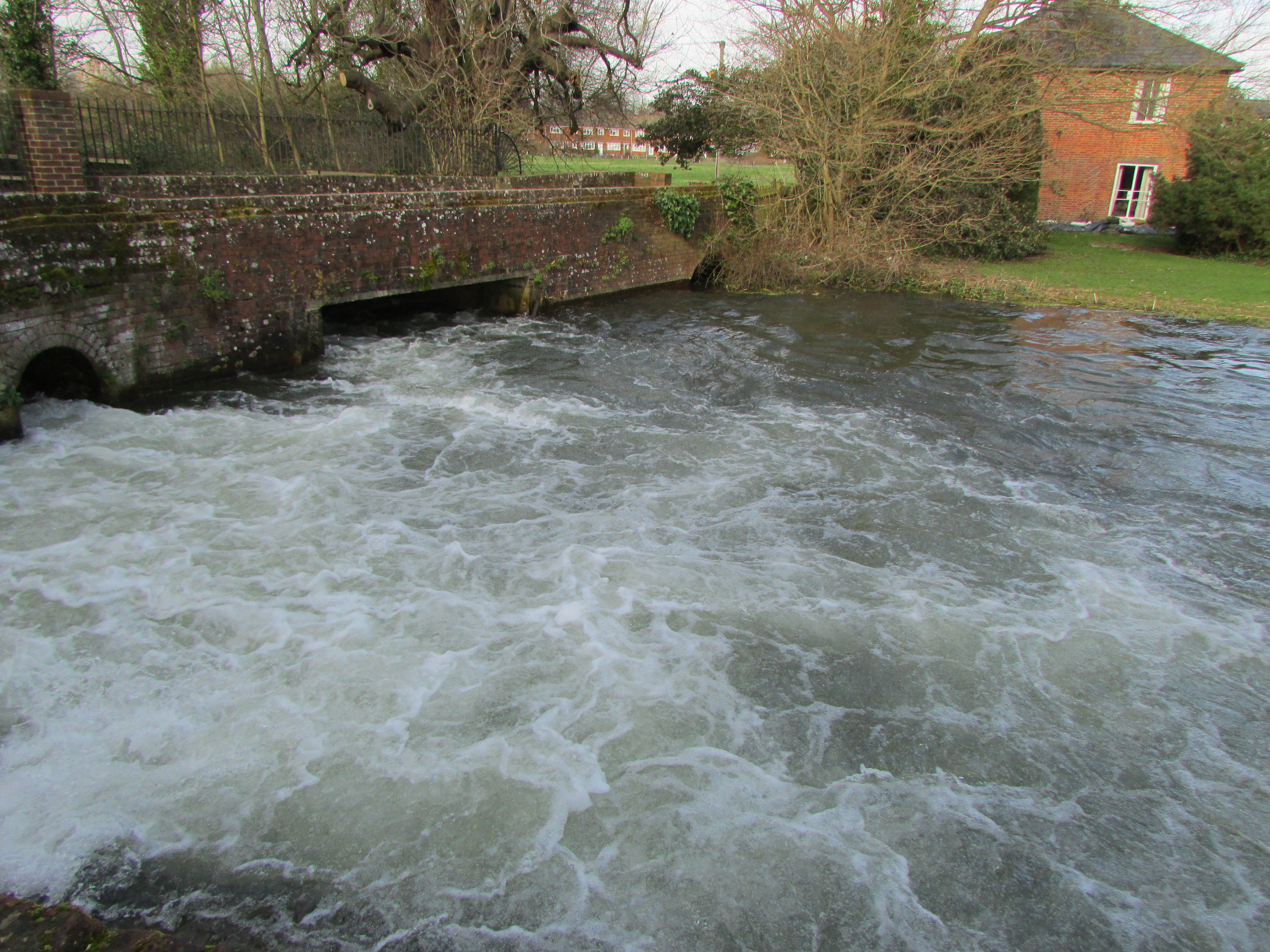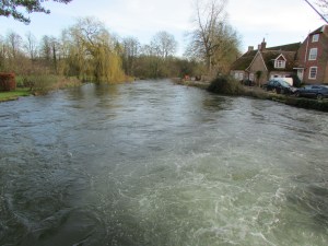 With significant rainfall over the last few months most of the area shows signs of the flooding, with large swaths of land under water. This is when your dream house overlooking the river can become your worst nightmare. Fortunately the floods have abated somewhat and the level of this particular chalk stream was perhaps 18-24″ up on its normal level. It was bombing through of course but the pools looked very fishable and there were a number of very enticing slacks to be found close in amongst the partially submerged marginal trees and bushes.