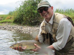 With Red Kites, Buzzards and a plethora of other wildlife surrounding us it’s not difficult to feel like you’re the richest man in the world to be lucky enough to experience places like this. We are so lucky to be fit and able enough to indulge ourselves in such pleasures. Geoff had wandered to the upper limits of the fishery and was fishing from a croy. There was a deep run on the inside but it didn’t seem to produce anything and so he cast right across to the far bank. This made all the difference and he was soon into some barbel.